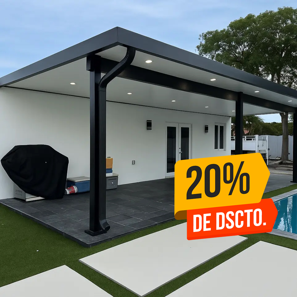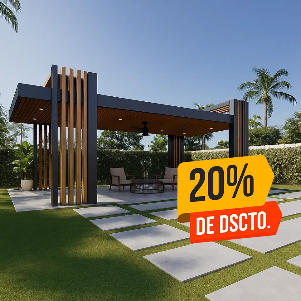 Nuestros cobertizos, pérgolas y terrazas estándar ofrecen diseños modernos, resistentes y con montaje rápido, ideales para quienes buscan una opción funcional y accesible sin necesidad de personalización.